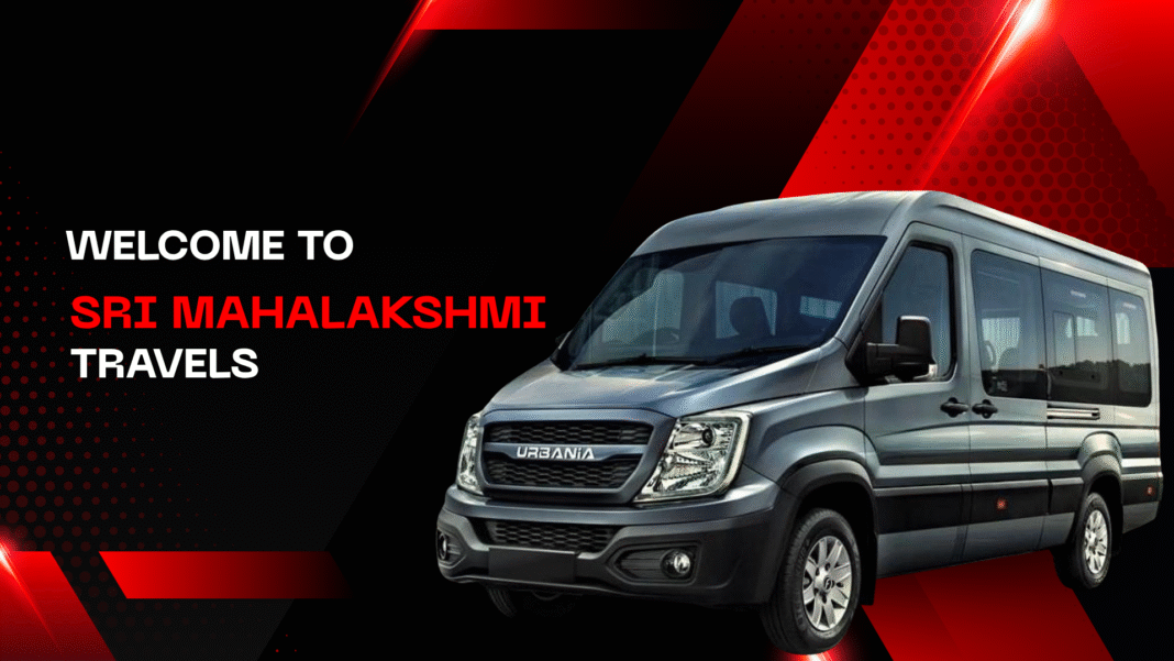 HomeSri Mahalakshmi TravelsWelcome To Sri Mahalakshmi Travels Welcome To Sri Mahalakshmi Travels Call Us: 9177323337 Share FacebookTwitterPinterestWhatsApp Sri Mahalakshmi Travels Must Read 30 Seater Bus Sri Mahalakshmi Travels - Mini Bus 22 Seater Mini Bus Tempo Traveller 12 Seater Tempo Traveller Mini Bus 28 Seater Mini Bus Force Urbania 12 Seater Force Urbania Force Urbania 16 Seater Force Urbania Sri Mahalakshmi Travels About Us Sri Mahalakshmi Travels Frequently Asked Questions (FAQs) Sri Mahalakshmi Travels Contact Us Tempo Traveller 16 Seater Tempo Traveller Tour Packages Hyderabad to Srisaialam Tour Packages Hyderabad to Swarnagiri Temple Tour Packages Hyderabad to Yadagirigutta Tour Packages Hyderabad to Tirupati Tour Packages Hyderabad to Sabarimala Tour Packages Hyderabad to Goa Bus Rent 50 Seater Bus Tour Packages Hyderabad Sightseeing Package Travel Bus Rental for Hyderabad Local Travel Travel Bus rental for Outstation Travel Travel Bus Rental for Airport Drop and Pickup Picnics Bus Rentals for Picnics and Excursions Corporate Rentals Corporate Bus Rentals Bus Rentals for Weddings Bus Rental for Weddings, Parties and Functions Hourly Packages 12 Hours 120 Kms Bus Rental Hourly Packages 8 Hours 80 Kms Bus Rental Tour Packages Bus Rental to Ramoji Film City Related Pages Bus Rent 30 Seater Bus October 17, 2025 Mini Bus 22 Seater Mini Bus October 17, 2025 Tempo Traveller 12 Seater Tempo Traveller October 17, 2025 Mini Bus 28 Seater Mini Bus October 17, 2025 Force Urbania 12 Seater Force Urbania October 17, 2025